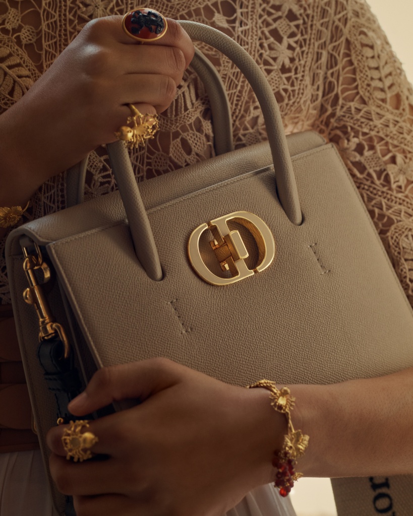 Dior St Honoré托特包有大型與中型兩個尺寸,CD金屬旋轉環扣以金質拋光處理,中型尺寸也有以琺瑯工藝打造的CD扣環,營造與包身相同的色澤與視覺美感。象徵卓越皮革工藝與翻轉新創意的全新包款,為Maria Grazia Chiuri構築不受季節影響的30 Montaigne經典系列增添全新配件,是經典與傳承間未曾止息的川流。