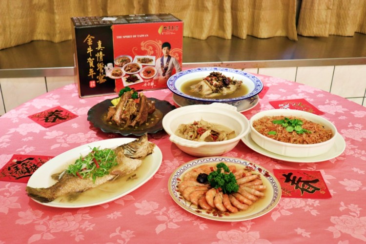 在全聯福利中心獨家販售的「金牛賀年真情饗宴」,整套包含一品人蔘雞湯、櫻花蝦米糕、御品紹興醉蝦、紫蘇梅香烤肋排、海皇時蔬燴鮮魚、迎春麻油猴頭菇等6道可供8人共享的精采好菜。