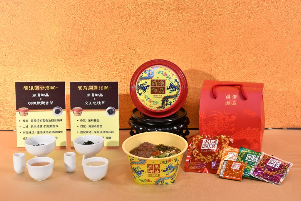 「在享用完滿漢御品後,因嘴內充滿牛骨膠質湯頭的鹹味,透過冠軍製茶師的有機鐵觀音茶,以烘焙感的茶香收尾,讓殘留在口中的鹹味轉化成甘味,口齒留香、神清氣爽。」焦志方強調,台灣精品牛肉麵滿漢御品與頂級茶款是絕配。