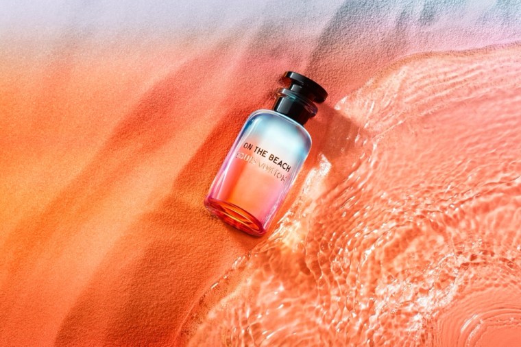 路易威登並與藝術家Alex Israel再次攜手合作,推出如詩如畫的精美設計,Sun Song、Cactus Garden、Afternoon Swim、California Dream瓶身也是他的代表傑作。熱愛夢幻色彩變化的Alex Israel,捕捉了光線在一系列夢幻場景中的震顫,發出虹彩般的色彩,稱為「無題(平面)」。紅色的「無題(平面)」切入瓶身與包裝的橘色,每一瓶都有隨機的漸層,呈現獨特的動態效果。全新香水On the Beach 擁抱所有天使之城的無常夢幻。