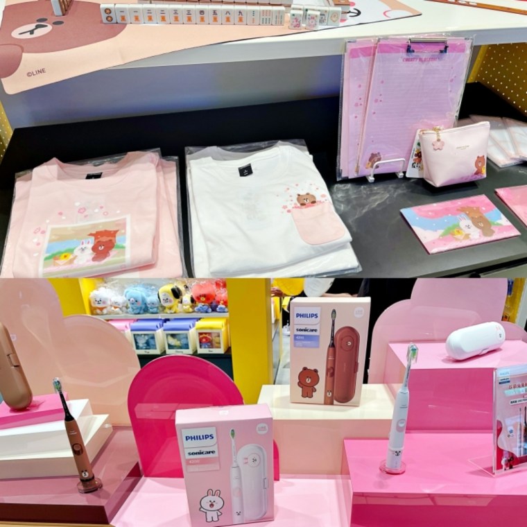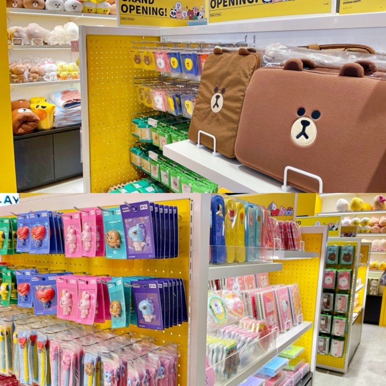 店內分為BROWN&FRIENDS及宇宙明星BT21兩區周邊商品,牙刷、3C產品、電腦包、口罩夾、鉛筆盒、造型筆、鑰匙圈、可愛文具、辦公用品、各種居家生活小物、各種角色公仔娃娃等應有盡有,獨家款PUPPY BROWN落肩款短T更是首次亮相,全都等著粉絲帶回家!