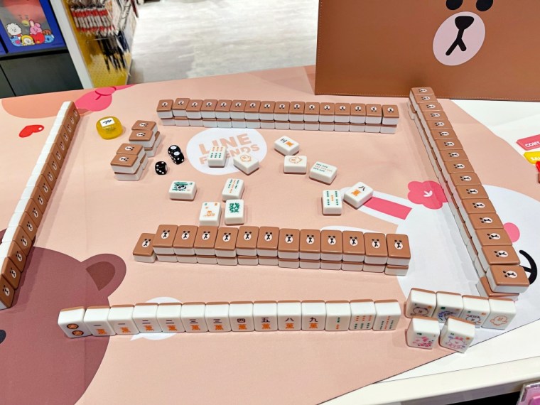 意圖引人犯罪的「熊大精裝麻將組」,一曝光瞬間就萌翻大家,造成粉絲激烈轟動,麻將皮箱印有熊大的可愛呆萌圖樣,還有當賭神必備的BROWN & FRIENDS熊大、兔兔麻將桌墊及麻將牌尺,可以配合電動麻將桌使用。