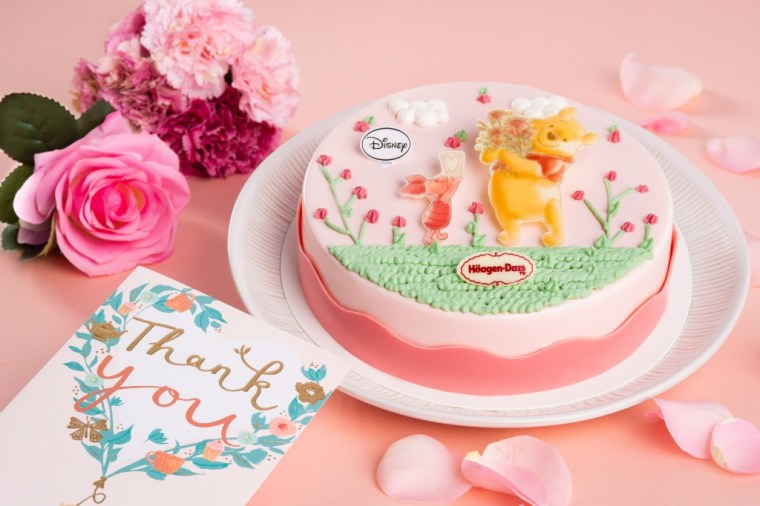 「馨愛維尼」:延續Häagen-Dazs經典不敗的迪士尼聯名系列蛋糕,內餡由夏威夷果仁與草莓味冰淇淋組成,外觀是可愛維尼手持著小巧花束,對媽媽表達最純粹真實的心意,童趣的外表更是一家人的美好回憶。