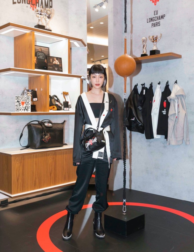 本次聯名系列Le Pliage®的精緻工藝與EU溶解愛心圖樣完美結合,推出可甜可鹽的百搭包款,謝欣穎演繹時下時尚運動穿搭,「平時很喜歡以不同材質或配件表現全黑色系造型,而這樣中性的服裝,更能表現時髦性感的樣子。Longchamp經典旅行袋印滿品牌奔馬LOGO與EU溶解愛心圖樣,充滿個性的設計中保留活潑可愛的風格。」