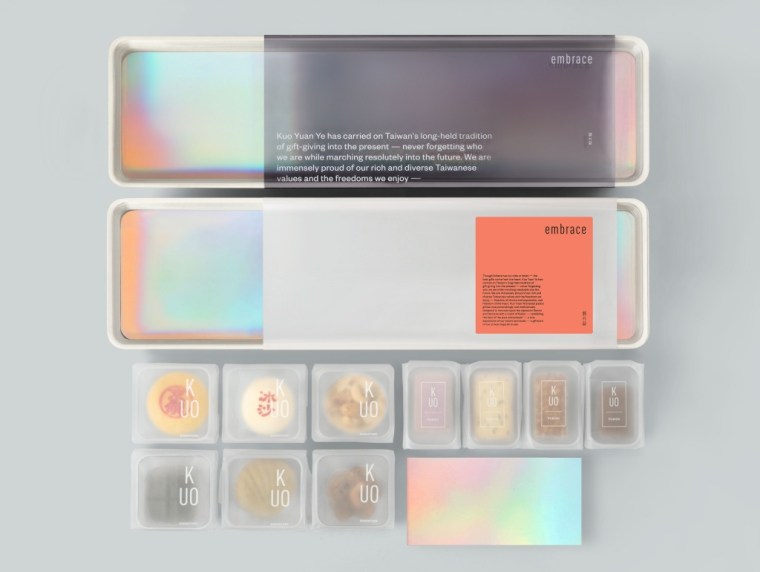 郭元益再次與設計師聶永真合作,「郭元益X聶永真155周年紀念禮盒embrace」採獨家款、訂製感與精緻服務,訂購份量與款式,100%自由選擇量身打造,以全流程客製化打造高質感與個性化喜餅。郭元益副總經理郭建偉表示,「embrace傳遞對你的好,不拘一式的概念,時代的更迭,總是新舊融合,承襲傳統送禮習俗也擁抱創新。世界如此廣大,送禮的規則就這麼張開雙手,如棉花糖般的蔓延與包容這個星球上每一個有稜有角的地球人。」
