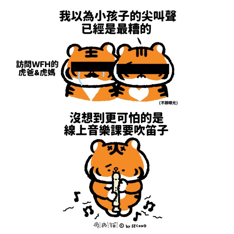 百萬粉絲插畫家SECOND吳政安筆下的角色爽爽貓,防疫期間誕生了一個新角色小勞撫,在疫情期間停業的健身房,首PO了「健身三年對比防疫三天」故事,而「我以為小孩子的尖叫聲是最糟的,沒想到更可怕的是線上音樂課要吹笛子」的貼文,因小學生在家遠距教學,跟著老師上直笛課讓家長崩潰,引起許多地方媽媽的迴響紛紛轉發,這幾天美女直笛女老師影片,吸引許多爸爸們也加入討論。兩篇文章意外引起討論熱度,讓網友笑說:「在家直笛課會引發夫妻失和危機嗎?」