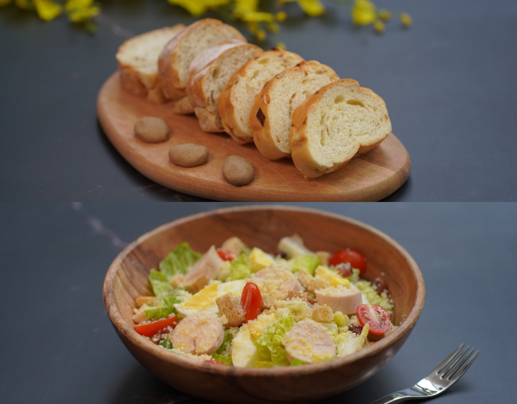 「炭烤盤克夏帶骨里肌豬排」精選脂香甜美的美國盤克夏豬,經過簡單調味再放入爐火炭烤,讓香氣慢慢滲入,嚐來肥肉香Q不膩。搭配主廚特製經典馬鈴薯泥及爐烤什錦蔬菜,清爽開胃;獨家限定的洋蔥麵包與迷迭香麵包2款,沾上主廚特製調味黑蒜奶油,綻放濃郁奶香與黑蒜芬芳。最後以細膩柔順的乳酪質地製成的人氣主廚精選蛋糕收尾,療癒美味讓美食輕鬆妝點家中餐桌。