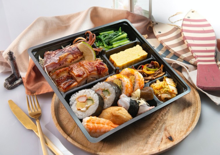 漢來海港推出的海派日式便當,有鹽烤小卷、香煎鮭魚雙海鮮主菜,還有7顆握壽司。漢來牛排館準備了美味的西式餐食:炭烤紐約客、炭烤雞排及焗烤龍蝦,搭配20種鮮蔬做成的沙拉與現烤馬鈴薯,成為假日在家與家人共享的大餐。
