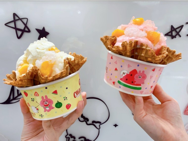 COLD STONE攜手卡娜赫拉的小動物,首推超萌聯名的卡娜赫拉小動物造型冰杯,加碼推限量卡娜赫拉的小動物繽紛環保袋,將P助與粉紅兔兔化身沁涼水果好朋友,結合多汁的西瓜、鳳梨、芒果等果香,以2021年度PANTONE代表亮麗黃色為夏日搶眼色澤,特別設計輕巧收納功能,提升便利攜帶貼心感,袋型設計以生活中各種時刻皆萬用,非常適合全客層,完美締造新一波搶手時尚環保袋。
