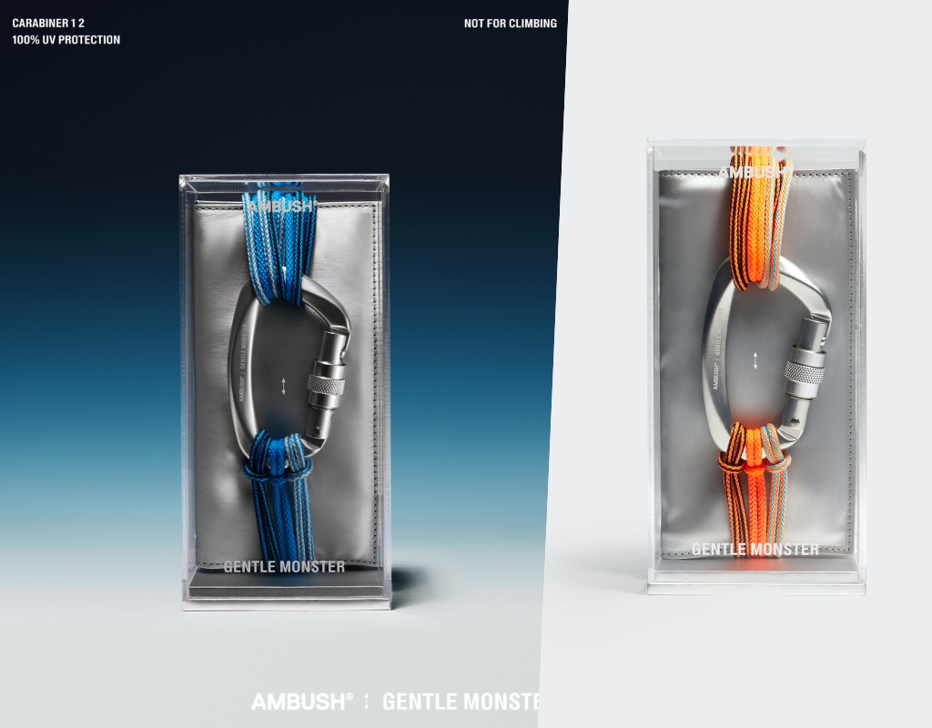 2019年韓國潮流眼鏡品牌GENTLE MONSTER與日本街頭潮牌AMBUSH強勢首度推出限定聯名款,創造上市一週內近乎完售的墨鏡神話。睽違2年創新設計全新系列,靈感來自於登山時的繩索裝備及凌駕高處去俯瞰視野,重點在於鏡臂的D形「登山扣」,不僅符合眼鏡鍊的配件趨勢,更昇華雙品牌的獨特思想。此系列太陽鏡共有2款設計、每款3種顏色,即日起全球同步限量發售。