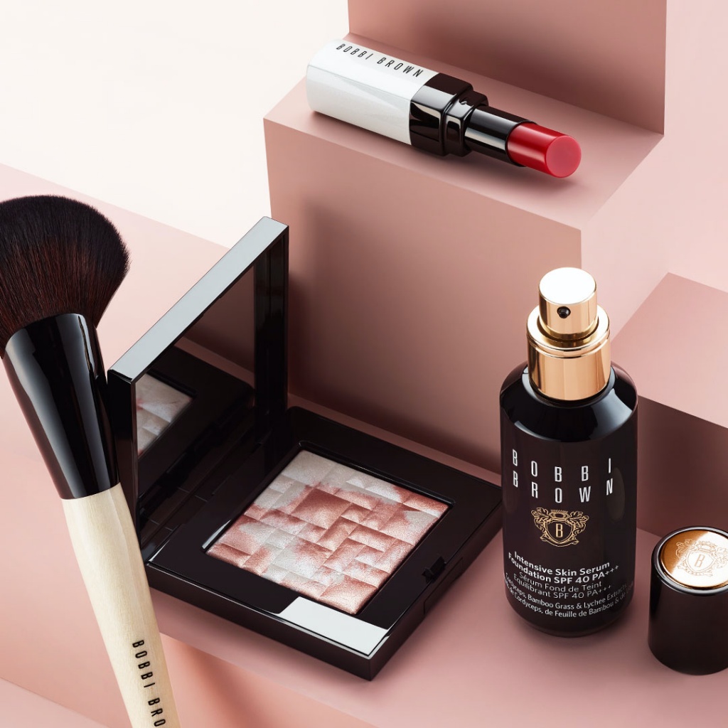 Bobbi Brown完美彩妝4步驟,打造夏日閃耀仙女肌。1:做好妝前保濕後,使用「冬蟲夏草精華粉底」,讓肌膚更加澎潤、平滑,打造神級水光肌。2:挑選最喜歡「金緻美肌粉」輕刷於眉骨、顴骨、鼻頭、雙頰處,突顯五官的細節,讓整體妝容更有亮點,散發夢幻光澤。3:刷上「極致鑽石眼影#Moonstone 」閃亮玫瑰金眼影,口罩以上絕對要即緻閃耀。4:抹上「晶鑽桂馥潤色護唇膏」讓嘴唇更加水潤Q彈。