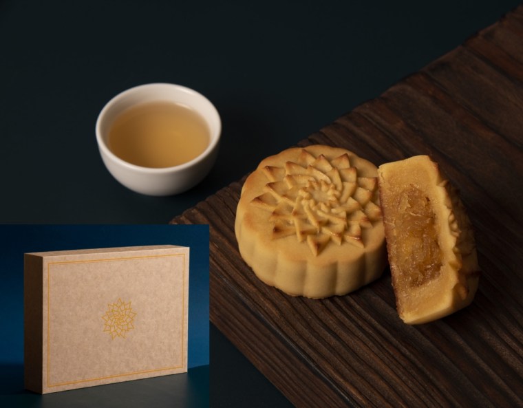 禮盒的包裝設計靈感來自充滿祝福意象的傳統剪紙藝術,以「富貴月圓」為主題的「月光寶盒」融合了奢華松露的「松露起司奶黃月餅」、果香濃郁的甜點系「草莓乳酪奶皇月餅」、香濃咖啡焦糖的「咖啡焦糖威士忌月餅」,及結合在地茶與松子香氣的「烏龍蓮蓉松子月餅」4款風情;盒身由回收咖啡渣製成,搭配鏤刻的剪紙雕花設計,象徵富貴滿堂與圓圓滿滿的中秋祝福。每盒都會附上一組專屬造型設計杯墊,兼具收藏與實用價值。