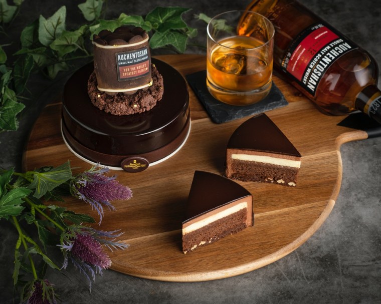 點心坊由甜點型男巫政翰主廚獻上期間限定商品「巧克醺爵」白蘭地生巧克力蛋糕,今年大推成熟大人口味,主打巧克力酒香,選用「巧克力界LV」法國VALRHONA法芙娜可可粉,混合搭配瑞士100%純黑巧克力、及法國與西班牙巧克力,以VSOP白蘭地入酒釀製,品嚐輕甜酒香的多層次驚喜,上層使用濃醇香甜可可巧克力覆蓋杏仁脆粒搭配焦糖翻炒後的酥脆榛果脆片,巧妙中和並完美達成入口滑順的平衡,是專屬老爸的滋味。