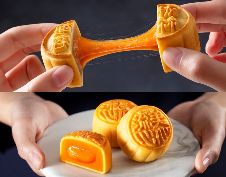 美心月餅堅持香港製造,原裝進口香港經典傳奇港式雙黃蓮蓉月餅、首創始祖流心奶黃月餅,及新口味拔絲蓮蓉月餅等多款港式月餅。今年全新登場「拔絲蓮蓉月餅」 ,將拔絲效果融入月餅,內餡是濃濃蛋黃配清香蓮蓉與焦香花生碎完美結合。餅皮暗藏秘密武器就是含有經烤香的花生碎,烘焗後會呈現香烤小點,室溫保存無需加熱,切開後內餡可以拉出幼滑蛋黃絲,絲絲驚喜玩味十足!