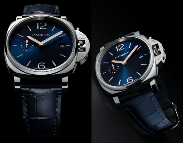 Piccolo Due是沛納海首次專為女士量身設計的系列,錶殼直徑為38毫米,搭配亮面拋光鱷魚皮錶帶。Luminor Due腕錶錶盤直徑為42毫米,搭配半啞光鱷魚皮錶帶,契合沛納海一貫的獨特氣質。腕錶配備沛納海快拆錶帶系統,易於快速更換不同色彩、材質與質地的錶帶,方便不時變換腕錶風格。