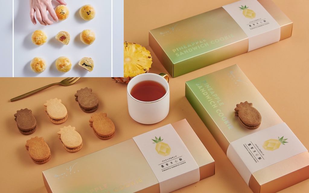 肉桂捲人氣名店Miss V Bakery創意推出「司康月餅」、「鳳梨夾心酥」,嚴選食材中西合璧,司康月餅內餡選用宜蘭紅土鹹鴨蛋、嘉義布袋野生特級烏魚子等台灣特產製作,以動物性鮮奶油揉製餅皮,風味清爽綿密,熱量更低。鳳梨夾心酥使用法國天然發酵奶油與天然香草製作奶油酥餅,減糖配方更凸顯伊斯尼奶油的香氣與土鳳梨的酸甜。