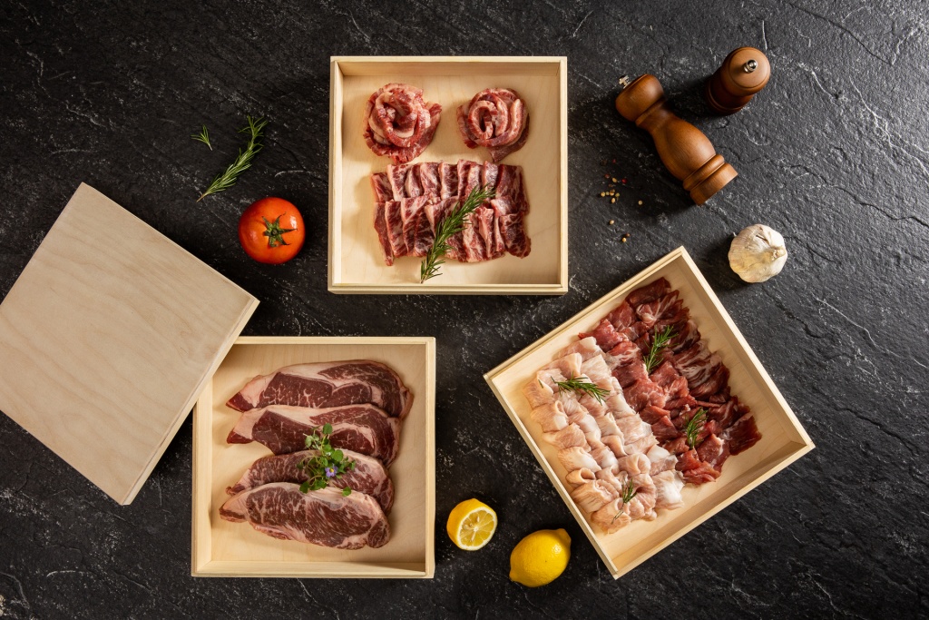 肉汁香濃甘甜,吃起來軟嫩有嚼勁的美國無骨牛小排、擁有大理石般油花,口感極為柔軟甜美的美國肋眼牛排、肉質醇厚餘韻自帶甘甜且口感結實有嚼勁的美國頂級紐約客,及肉質紮實肥而不膩,口感相當彈牙的丹麥豬松阪,都是這次禮盒的一大特色。火烤前放置冷藏庫低溫緩慢解凍8小時,可避免汙染風險並完美保留肉汁。