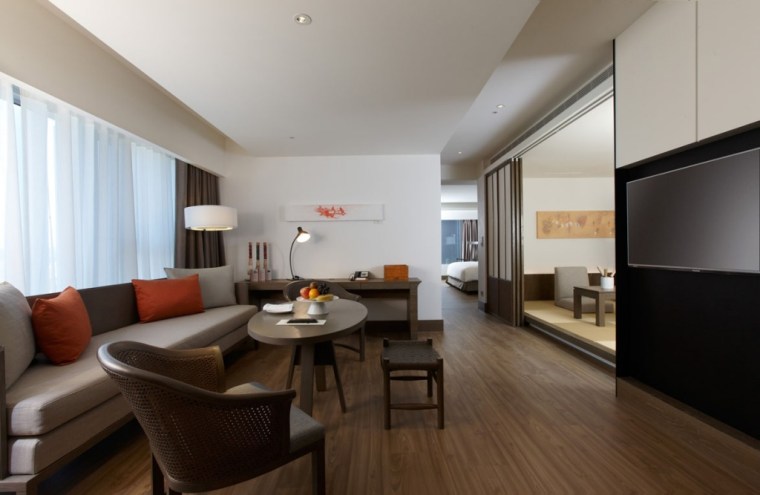 「晶」夏出海趣官網限定住房專案「22坪府城套房」為台南晶英飯店頂級房型,各樓層僅有一間且位於靜謐轉角處,採光充足明亮,坐擁窗外城市街景的蛻變與脈動,房內設有獨立臥室、客廳與榻榻米和室,空間感十足,客房免費備品加贈多元晶亮青春面膜,能讓肌膚在曬後得到充份舒緩,隔天醒來依舊可以亮麗出遊。
