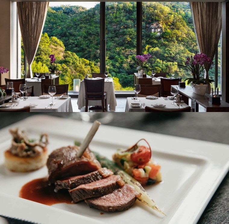 想重溫浪漫約會氛圍,晚餐可選擇歐陸餐廳1880元晚間套餐,主菜「紐西蘭羊排,焗烤馬鈴薯,燴蔬菜,蘆筍」選用無羊腥味紐西蘭羊排,搭配酸甜紅酒醬汁,肉質鮮嫩好入口。另一道主菜「海魚,明蝦,農夫蔬集,青豆」嚴選屏東新鮮龍膽石斑,配上鮮美的澎湖明蝦與干貝,每一口都品嘗得到新鮮海味。