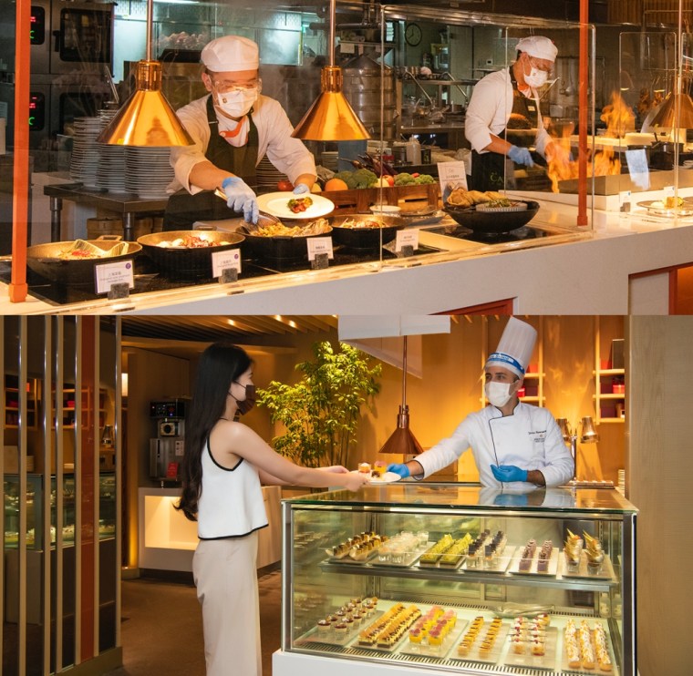 台北遠東香格里拉6樓超人氣遠東Café自助餐廳強勢回歸,飯店全館5家餐廳與3家酒廊將全數恢復營運,提供午餐、下午茶、晚餐及晚晚餐,開放式餐檯增設透明隔板,新鮮美味看得見,饕客亦可自由挑選佳餚,取餐方式改由廚師們服務以減少接觸,各區招牌餐點維持現點現做,盡享美饌同時兼顧防疫。