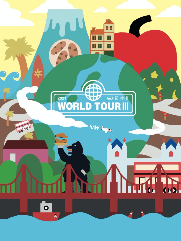 《World Tour III》吸睛奪目的相關設計物,呈現此次參與餐廳所屬城市的美食、景點與文化的直接視覺,為此衍生一系列引人注目、極具收藏價值的經典海報組、T恤、集合城市特色的刺繡臂章與帆布袋等獨家週邊產品,及令人眼睛為之一亮的小物,是每位到訪RAW的朋友都不能錯過的限量聯名商品。