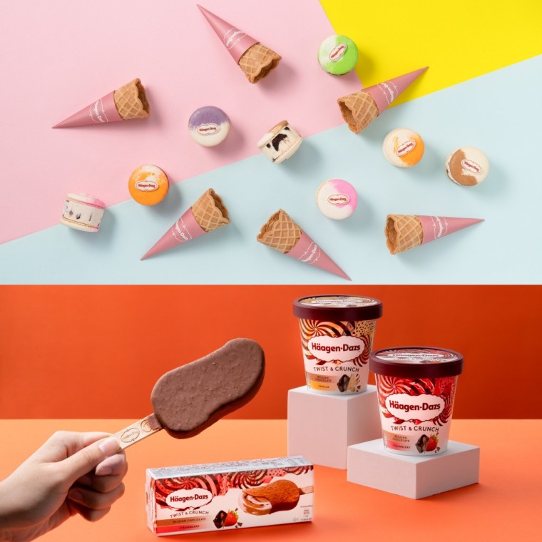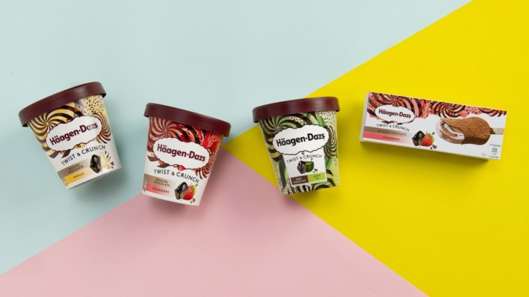 冰淇淋品牌Häagen-Dazs哈根達斯推出「TWIST&CRUNCH雙享巧脆系列」,完美融合雙重特色風味,以最受歡迎的巧克力冰淇淋分別混搭草莓、香草與抹茶,搭配巧克力脆片與濃郁可可醬,一口享受多重美味,讓味蕾一次獲得極大滿足。
