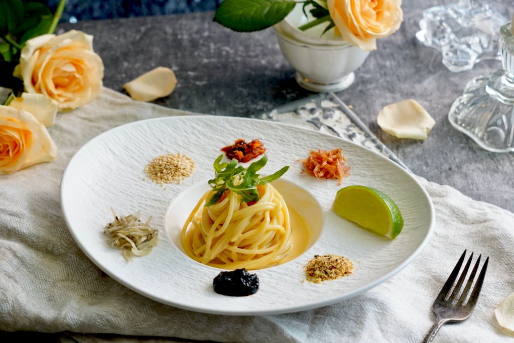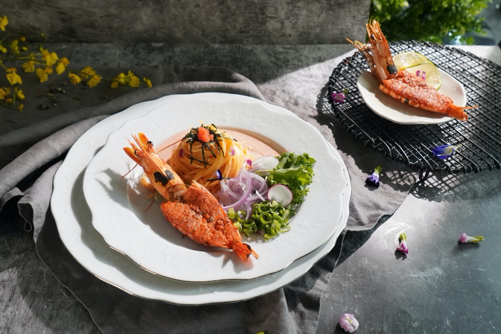 「極上什味義大利麵」結合Cacio e pepe與Carbonara兩種義大利麵形式,可隨個人喜好自由搭配日式胡麻油辣醬、烘烤櫻花蝦、白芝麻粒、新鮮檸檬片、柚子七味粉、昆布醬、吻仔魚等,調配專屬自己獨一無二的風味;「絲綢生乳大蝦義大利麵」則以北海道鮮乳呈現清爽的乳香與清甜滋味,襯托出明太子的鹹香,整體香氣飽滿又輕盈不膩口。