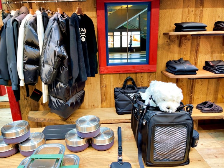 限定店內陳列以奢華高性能材質打造的全新Prada服飾系列,如喀什米爾羊絨帽飾、圍巾,Re-Nylon與Re-Nylon Piuma絎縫夾克、背心洋裝、羔羊毛手提包,及各種高山雪地雙板滑雪板、單板滑雪板、滑雪頭盔與雪地護目鏡可供選購。滑雪板、滑雪橇目前已經售罄。
