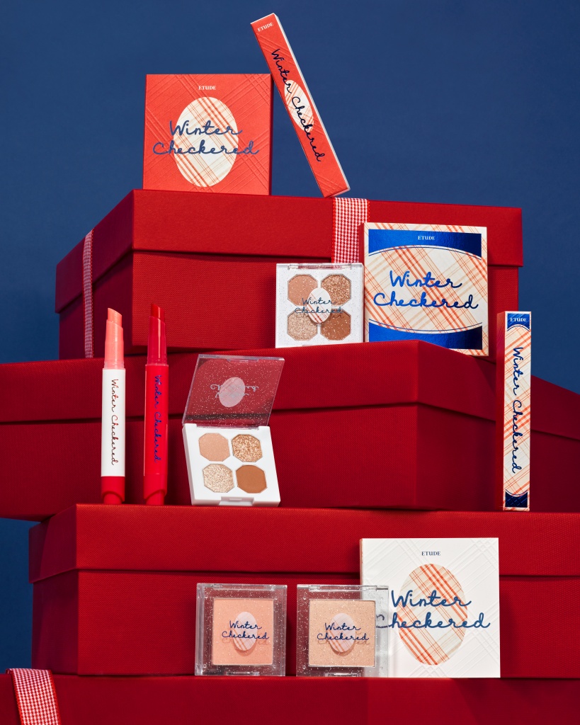 ETUDE則推出聖誕限定格紋派對系列,重點是眼影、腮紅及打亮,上半年賣到缺貨的膜幻濾鏡透感唇霧,也再出全新秋冬焦糖甜點系列,搭配就能打造朦朧仙女系生裸妝公式!