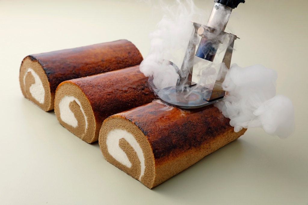 招牌蛋糕捲推出台灣少見的炙燒焦糖咖啡捲,在咖啡口味的蛋糕捲外表覆蓋著宛如琥珀色的脆脆糖衣。為了克服焦糖久放會受潮軟化的缺點,甜點師特別選用不同特性的糖類混合不同比例後,均勻噴灑在蛋糕捲外層,再以日本進口炙燒槍均勻燒製成薄脆糖衣,搭配咖啡口味的蛋糕體,與卡士達、純生鮮奶油、中澤乳霜打發的內餡,是香甜可口的大人味。