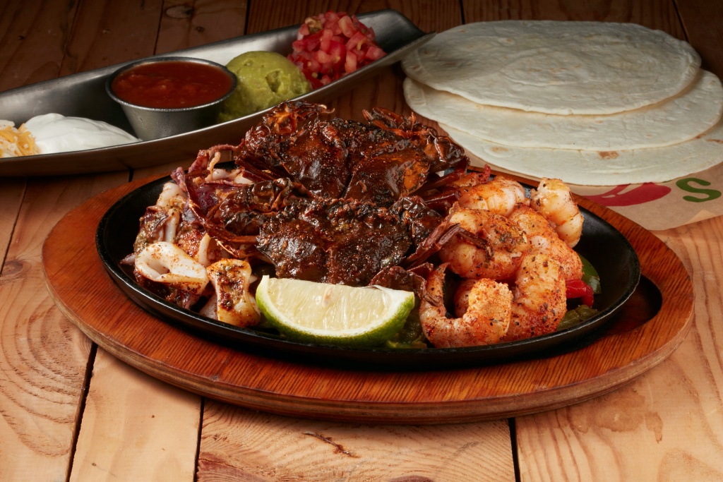 軟殼Share海鮮法士達:Chili’s最受歡迎墨西哥特色料理之一法士達,熱呼呼的鐵板上滋滋作響的美妙聲音,與撲鼻迷人的香氣是最大特色,2021設計終極海鮮升級版,將整隻軟殼蟹烤到香酥飽滿,搭配海味滿滿的中卷與鮮蝦,佐以辣味煙燻奶油與各式蔬菜,將喜歡的食材一起包進微溫的墨西哥捲餅中,隨意搭配都有美妙滋味的迷人魅力。