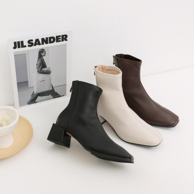 D+AF素面方頭積木跟襪靴:榮登年度搭配性No.1,素面造型與俐落方頭楦型,簡約中帶有不簡單的時尚氣息,設計獨特的小心機5cm積木方塊跟,滿足滿滿細節控!全方位無死角的搭配性,保證一穿上立刻成為全場的目光焦點。