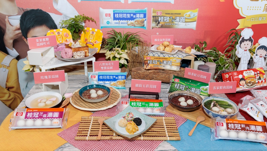 桂冠湯圓製作遵循著湯圓傳統浸米、磨漿、壓粿、蒸粿膜、揉粿粹、搓湯圓六道工序製作,每個步驟都不馬虎,正是桂冠湯圓軟Q好吃的秘訣。除了經典長銷的芝麻、花生與鮮肉湯圓之外,今年也推出「桂冠森永雙色牛奶糖小湯圓」、「桂冠花生雙醬湯圓」新品,及新上架與櫻桃小丸子聯名的「經典湯圓麻吉組」與「包餡小湯圓麻吉組」,無論是經典的搭甜湯吃、或是裹粉吃法,打造日常甜點的多元選擇。