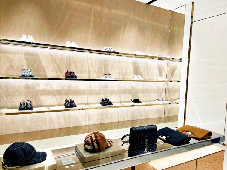 Burberry店面整體設計朝向純粹明亮的空間,形成彷彿藝廊光線明亮的氛圍。入口的獨立空間專門展示與強調當季典藏包款,此處目前擺放了Burberry煥新的Lola與Olympia包款。完整的Burberry系列配件擺放在玻璃櫥櫃和亮面漆架子上,用玻璃隔板打造寧靜溫馨的氛圍,店面懸掛Burberry最新的男裝系列,包括2022年早春系列、品牌標誌性風衣、外套款式,交錯陳列方式突顯出整個空間的不對稱美感,保有與顧客造型互動氛圍的舒適感,引領顧客,深入體驗英國傳統和奢華服務的精髓。