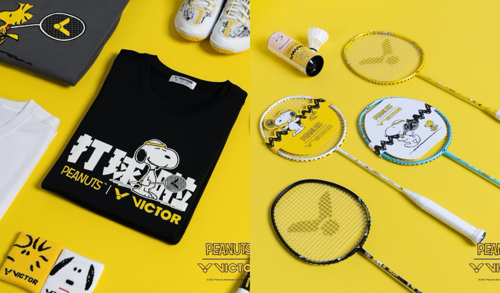 羽球品牌VICTOR與美國知名漫畫PEANUTS攜手合作,邀請超人氣角色SNOOPY及好友們一同拿起羽球拍,羽球領導品牌VICTOR攜手PEANUTS推出活潑充滿童趣的羽球裝備及秋冬休閒服飾,邀請超人氣角色Snoopy、Woodstock拿起羽球拍,針對不同級別的球友還推出專屬球拍與拍套袋,也設計適合秋冬穿搭的休閒潮流服飾,及印有Snoopy圖案的羽球鞋款及周邊小物,更首次推出限量造型球拍握柄保護套。