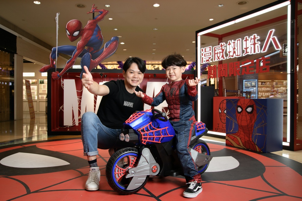 「漫威蜘蛛人期間限定店」首賣限量商品有LED閃輪兒童滑板車漫威蜘蛛人系列、蜘蛛人造型法蘭絨毯等。並為蜘蛛人鐵粉推出限定加價購活動,包含蜘蛛人造型頸掛式別證套、蜘蛛人造型環保杯綁、蜘蛛人造型頸掛手機綁帶等,讓蜘蛛人鐵粉隨時隨地都能化身蜘蛛人。
