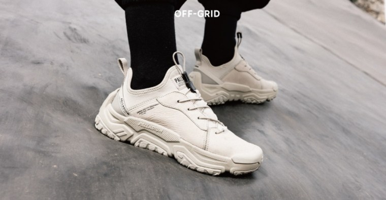 OFF-GRID輪胎潮鞋兼具機能與潮流感,PALLADIUM以高級迷霧色系為主題,延續OFF-GRID系列鞋款外型設計,釋出冬季限定5大低彩度配色低筒鞋款,低調又不失時尚感的低彩度霧霾色系,更大勢推出冬季限定隱藏色的「迷霧灰」,完美融合都會摩登與街頭色彩,以灰調帶粉藍色呈現高級中性色彩,讓潮男潮女在冬季皆有耳目一新的視覺體驗。