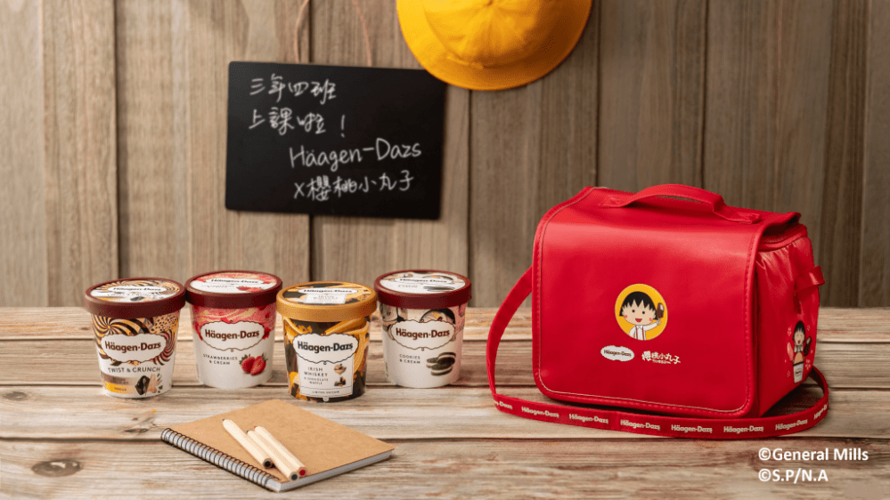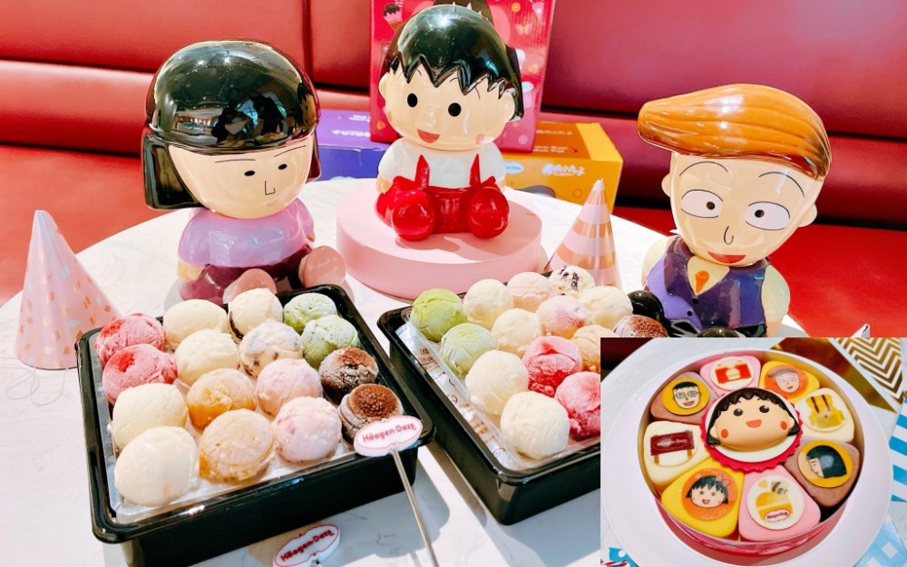 冰淇淋品牌Häagen-Dazs哈根達斯首度與日本經典卡通櫻桃小丸子聯名,推出「櫻桃小丸子冰淇淋火鍋禮盒」、「櫻桃小丸子摩天輪冰淇淋蛋糕」,及兩款造型保冷袋「小丸子書包品脫組」、「小丸子冰淇淋派對組」,冰淇淋配上濃醇可可醬,冰淇淋火鍋禮盒帶來絕妙好滋味。