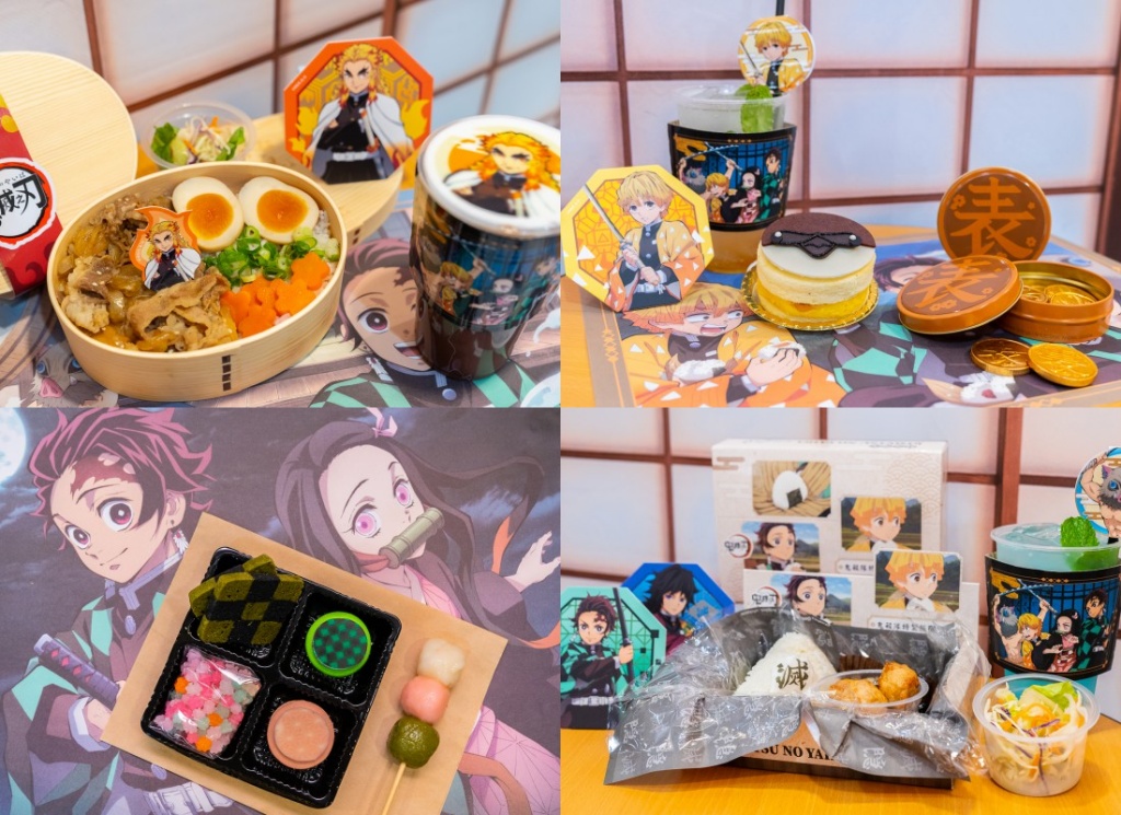 鬼滅之刃外帶café快閃店台北場除販售高雄場7大特色美食,也首次亮相鬼殺隊特製飯糰定食、禰豆子木箱蛋糕、兄妹點心盒、角色氣泡飲及鬼滅之刃果汁系列5大全新主題美食,粉絲們千萬不要錯過。