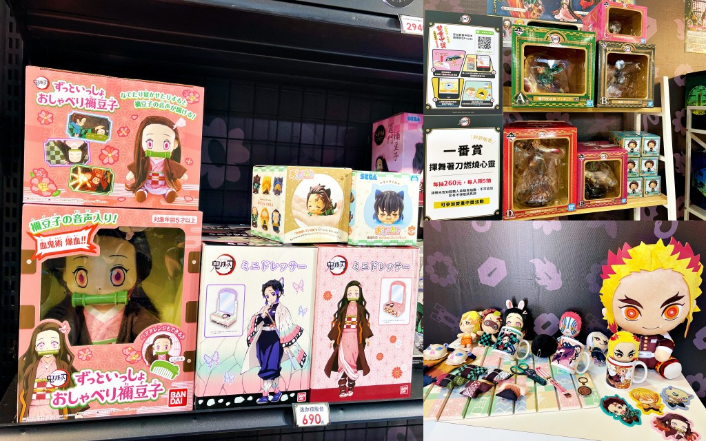 全新造型巨型扭蛋機就在入口處迎接著粉絲們到來,內含眾多限定商品,包含九柱粉必收的鬼滅之刃長型運動毛巾、有著啾太郎超萌造型的鬼滅之刃地墊、帶出去立刻成為全場焦點的鬼滅之刃飲料提袋、超可愛的鬼滅之刃零錢包,等著粉絲扭出驚喜。