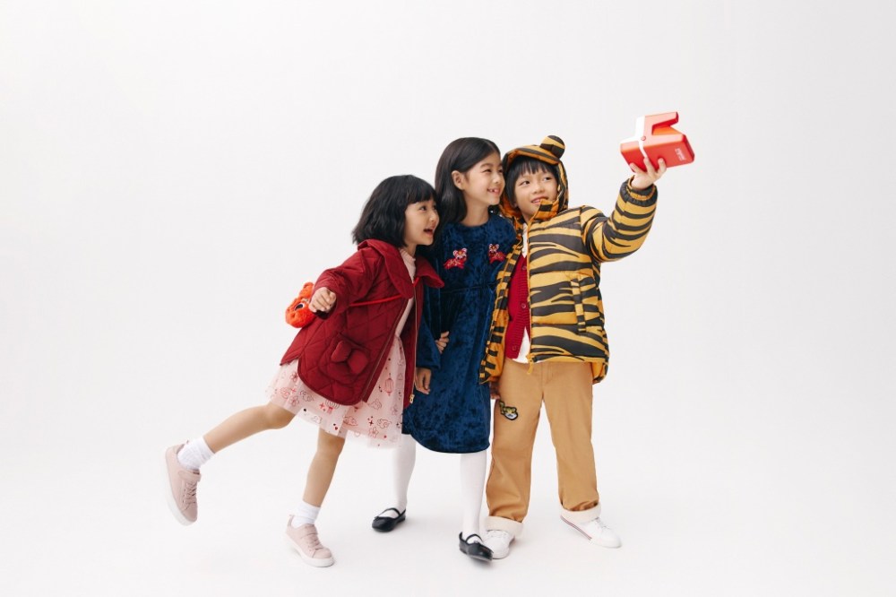 新春系列也為小朋友們準備了亮麗的節日裝扮,與活潑可愛的老虎圖案一同開啟鴻運美滿的全新虎年。紅色洋裝襯托可愛恬靜,虎紋外套及印花運動單品凸顯蓬勃朝氣。藕荷色針織外套及白色襯衫飾有精美盤扣細節,富蘊傳統文化元素,象徵健康與平安的美好祝福。