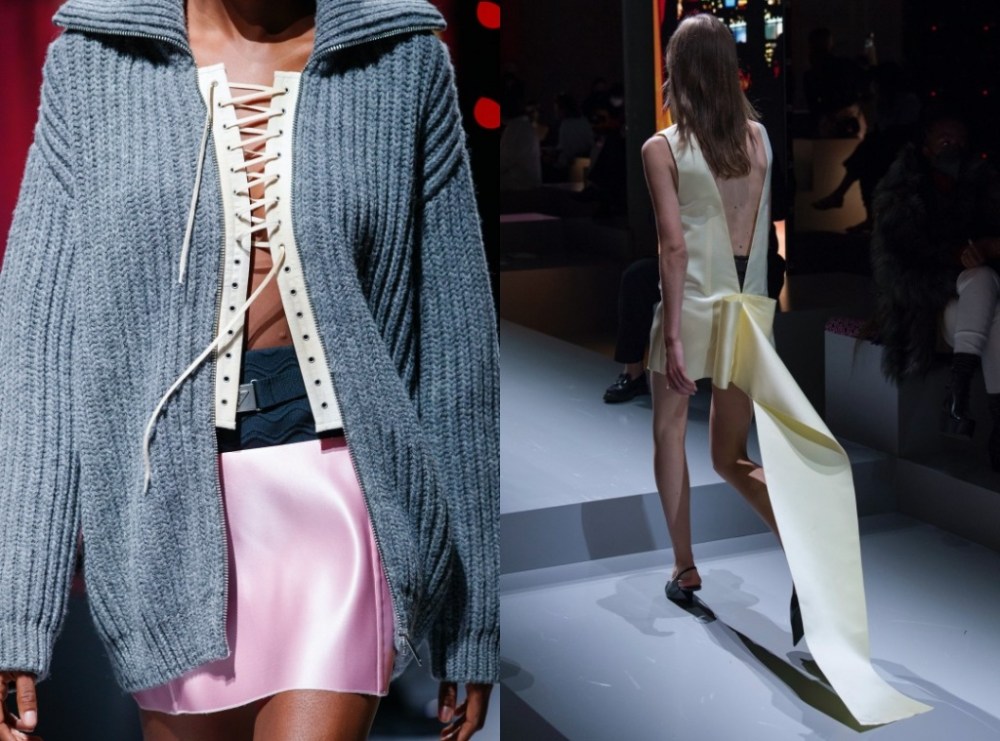 Prada 2022春夏女裝系列,服裝削減塑造魅惑姿態。PRADA聯合創意總監Miuccia Prada與Raf Simons在全新2022春夏女裝系列創作中藉由服裝構想誘惑魅力。通過層層服裝的逐步褪去,最終渲染姿態,展示形體。針織Polo衫融入胸衣曲線、迷你裙背面有著拖尾裙擺襬,馬甲裝飾設計的外套,展現PRADA性感的獨具潮流。