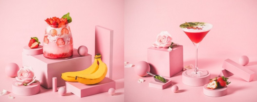 飲品與特調也不能少,首推為情侶、閨密們專屬設計的「不能莓有你」,以香蕉牛奶作為夾層,加入現打草莓冰沙,最後以玫瑰花點綴,1000ML超大份量,象徵著戀人與閨密們初相遇的美好滋味。「草莓花果茶」以木槿花茶為基底佐上草莓乾、乾燥玫瑰及黑醋栗,搭配甜點解膩又養顏。