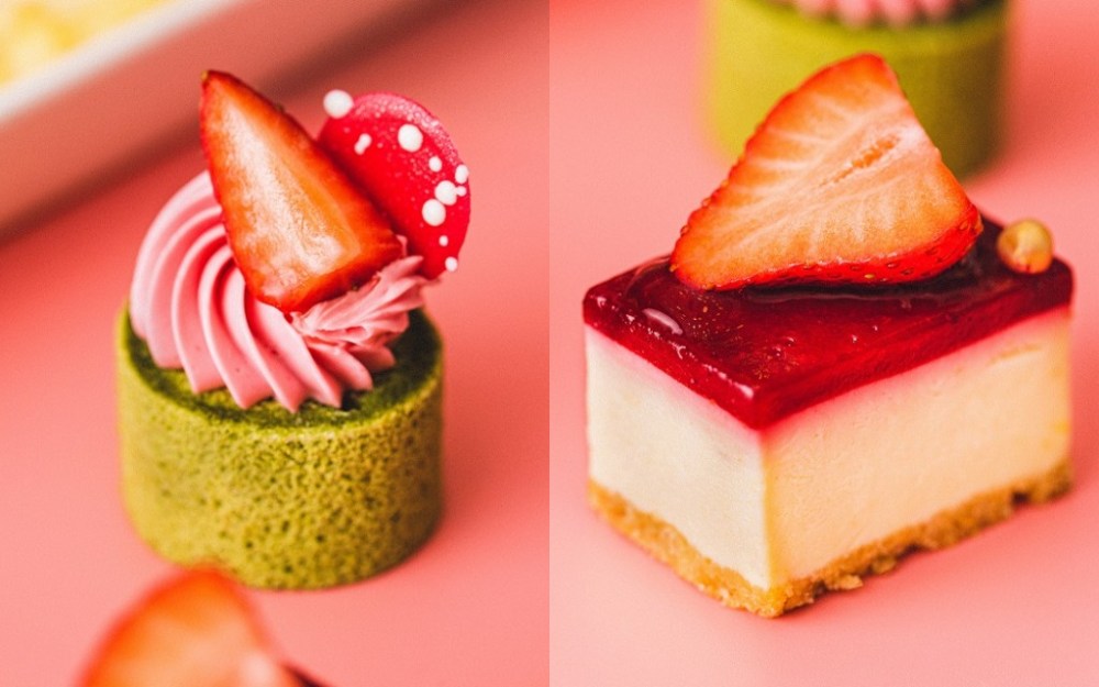 Market Flavor悅.市集首推「主廚限定草莓塔」進口巧克力搭配自製濃醇香卡士達醬,佐上酸香草莓,交織出完美口感。「抹茶草莓蛋糕」選用天然抹茶粉製成蛋糕體,搭配草莓香緹與新鮮草莓,酸中帶甜好滋味。