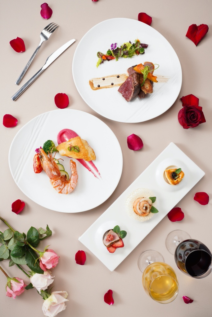主餐後登場的「鳳尾蘭」由麝香葡萄、梅酒凍、情人果與果醋調製的冰沙,清爽解膩。甜品「玫瑰」則由檸檬奶油、沙布列餅及紅茶戚風,最上層則搭配玫瑰荔枝覆盆子sorbet,酸甜的滋味就像愛戀一般,為浪漫情人餐宴畫上完美的句點。