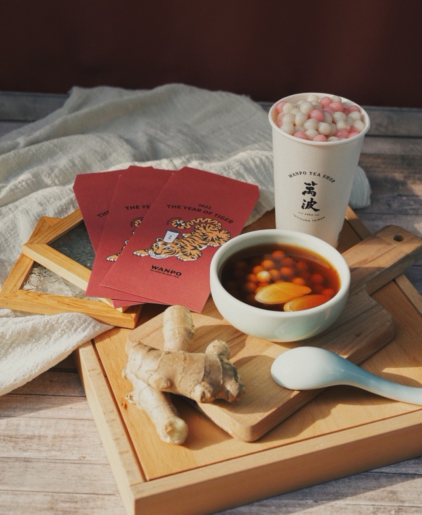 擅長將傳統甜點變成手搖飲的萬波島嶼紅茶,快閃推出新品「薑汁紅白小湯圓」,將傳統的紅白小湯圓裝進手搖杯中,每天用老薑現煮的薑汁,加入傳統紅白小湯圓,是溫暖又應景的新春飲品。