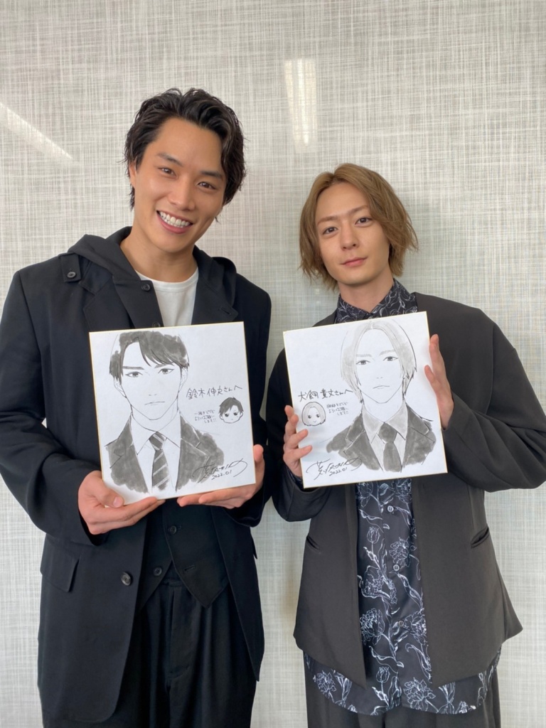 鈴木伸之在去年秋季檔的《不良少年與白手杖女孩》,頂著一頭金髮飾演的獅子王,暗戀男主角杉野遙亮的癡情讓許多粉絲入坑,在《契X約─危險的拍檔─》首度與犬飼貴丈合作,他讚對方聲音很有魅力,還擁有一雙彷彿會把人吸進去的大眼睛,強調一定可以在這部劇中發現全新的犬飼貴丈,甚至開玩笑說合作的3個月仿佛真的愛上他。