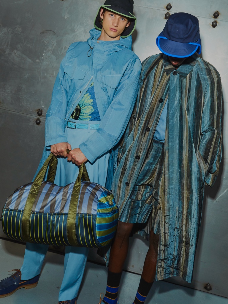 獨特的色彩配置與Paul Smith 22春夏男裝系列的色調運用如出一轍,該系列從戶外活動中汲取靈感,以大膽條紋呈現綠色與藍色的有機調性,詮釋自然柔和的沉靜色彩,並以午夜黑、純淨白與紅色條紋反映日出時天空中變化萬千的迷人色調。包包正面貼有PORTER和PAUL SMITH的聯乘標誌,凸顯兩個品牌之間密切的合作關係。