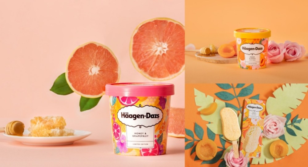今年除了熟悉的花果風味,Häagen-Dazs首度加入誘人的金黃蜂蜜,以天然蜂蜜的新鮮質純,化作蜂蜜葡萄柚冰淇淋、蜂蜜黃桃玫瑰冰淇淋及蜂蜜黃桃玫瑰脆皮雪糕。每一款都添加至真至純的天然蜂蜜,入口後即刻感受到清甜香氣,讓後調果香更加迷人,一次滿足花、果、蜜馥郁香氣,一口就能吃到幸福滋味。