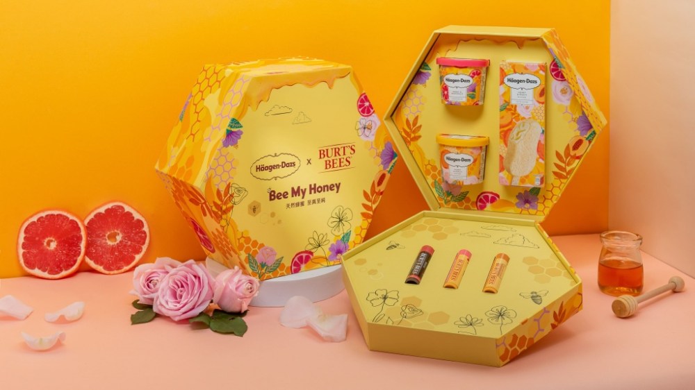 Häagen-Dazs首度攜手彩妝保養品牌Burt‘s Bees小蜜蜂爺爺,共同打造最甜蜜、最具春天氣息的「Häagen-Dazs x Burt‘s Bees甜蜜蜂潮禮盒」,內含蜂蜜系列新品及Burt‘s Bees人氣商品護唇膏,從多重感官出發,帶來由內而外的美好體驗。